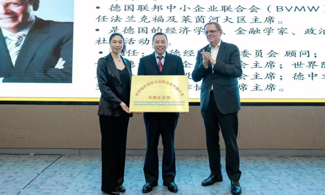 會(huì)上,世界隱形冠軍企業(yè)聯(lián)合會(huì)主席弗希德曼和秘書(shū)長(zhǎng)溫妮為聯(lián)合會(huì)中國(guó)區(qū)副會(huì)長(zhǎng)兼華南區(qū)首席代表羅永輝進(jìn)行了隆重的授牌儀式。